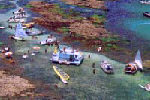 barcos de todos os tipos, que "atolam" na areia para servi-lo.