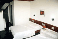 telefone, ar condicionado, música ambiente, TV e frigobar. Possui